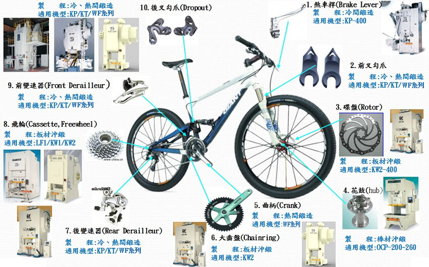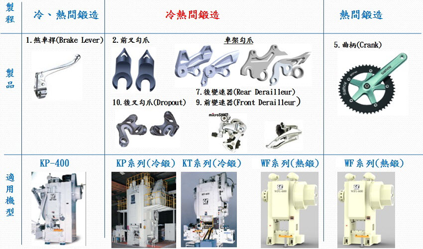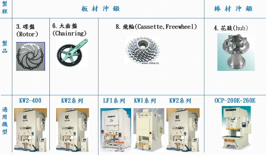 自行車主要沖、鍛件制程與適用機型